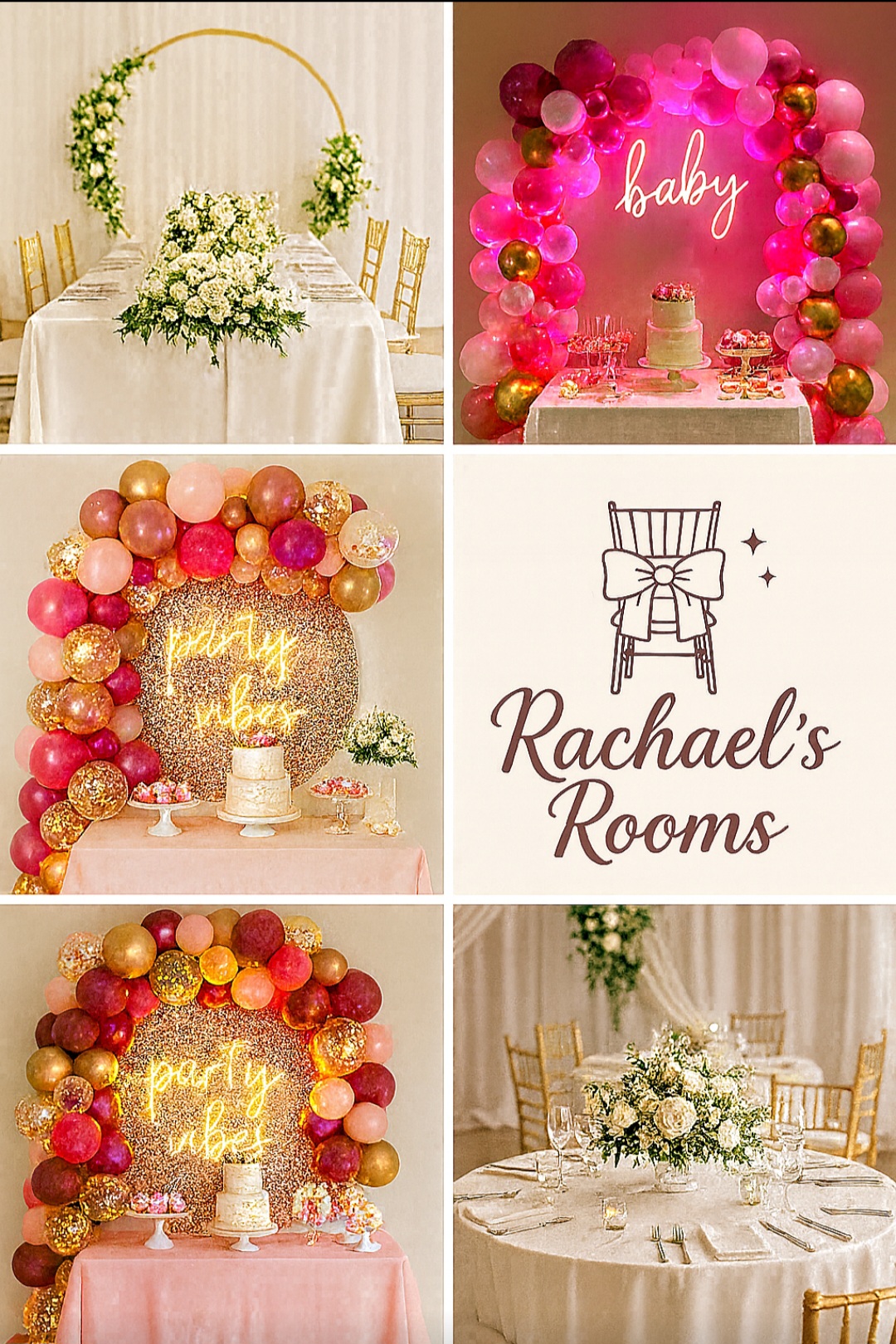 Whether you’re planning a grand wedding or an intimate gathering, let our inspiring designs spark your imagination and help you envision the perfect celebration — styled with love, designed with intention, and brought to life by me at Rachael’s Rooms.